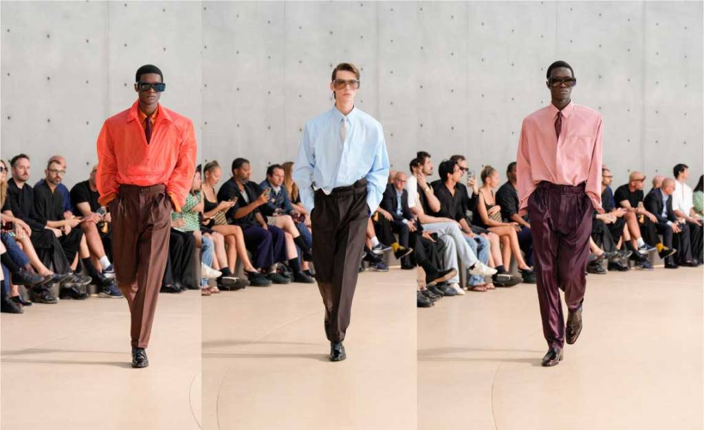 Although many may not like it, Prada is always leading the conversation on fashion and culture in general. This time, like Saint Laurent, they presented many colors, shorts so short they look like underwear — similar to what Miuccia showcased at Miu Miu a few years ago. Lots of loafers in various shapes and colors, which at first glance may seem ugly, but as always with Prada, after a second look, they start to look super cool.